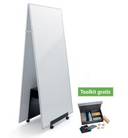 - Glasboards: Magnetische Whiteboards aus Glas fügen dem praktischen Nutzen noch eine ästhetische Komponente hinzu. Die Glasoberfläche ist äußerst kratzfest, als Marker empfehlen sich Kreidemarker auf Wasserbasis. Dadurch können Glasboards rückstandsfrei trocken oder nass gereinigt werden. Die Designvielfalt ist sehr groß, allerdings können Glasboards nicht frei im Raum positioniert werden, sondern verlangen nach einer festen Montage an einer Wand.