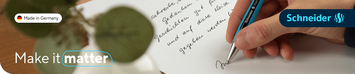 Für viel schreibende Schüler und Studenten bietet Schneider Schreibgeräte mit richtungsweisenden ergonomischen Eigenschaften für ausdauerndes und ermüdungsfreies Schreiben. Bei Schreibanfängern fördert der Füller die Entwicklung einer guten Schrift und geübte Schreiber bilden daraus ihre individuelle Note.